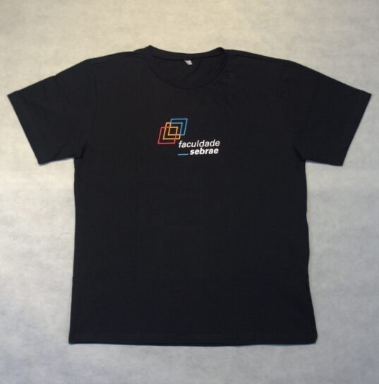 Camiseta distribuída para os participantes do jogo “Descubra suas Competências Empreendedoras”, atividade oferecida no estande da Faculdade Sebrae na Feira do Empreendedor 2023. O jogo proporcionava aos participantes vivências semelhantes a rotina dos alunos da Faculdade Sebrae. Os participantes que completassem os desafios recebiam um prêmio (caderno, camiseta ou squeeze) personalizados com a marca da Faculdade Sebrae. A camiseta também foi distribuída para alunos da Faculdade e colaboradores do Sebrae.